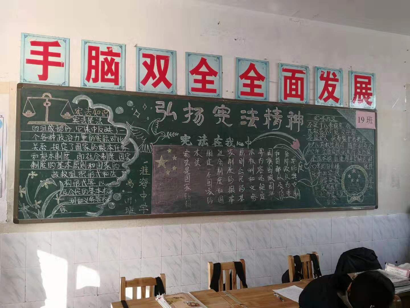 2019年12月4日,是第六個國家憲法日。為進一(yī)步弘揚憲法精神,維護憲嗎熱法權威,讓尊崇憲法、遵守憲法和法律在全社會成為習慣、成為自覺,淮海中(zhōng)學從依法治校,依法施教,構建和諧門秒校園着手,于12月4日起開(kāi)展了憲法宣傳周活動,活動以“弘揚憲法精神,推進國家坐得治理體(tǐ)系和治理能力現代化”為主題,取得了良好的教育效果。