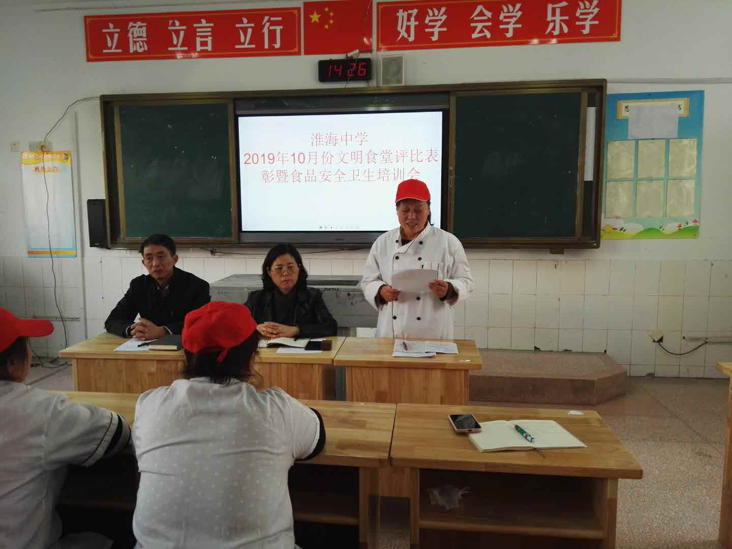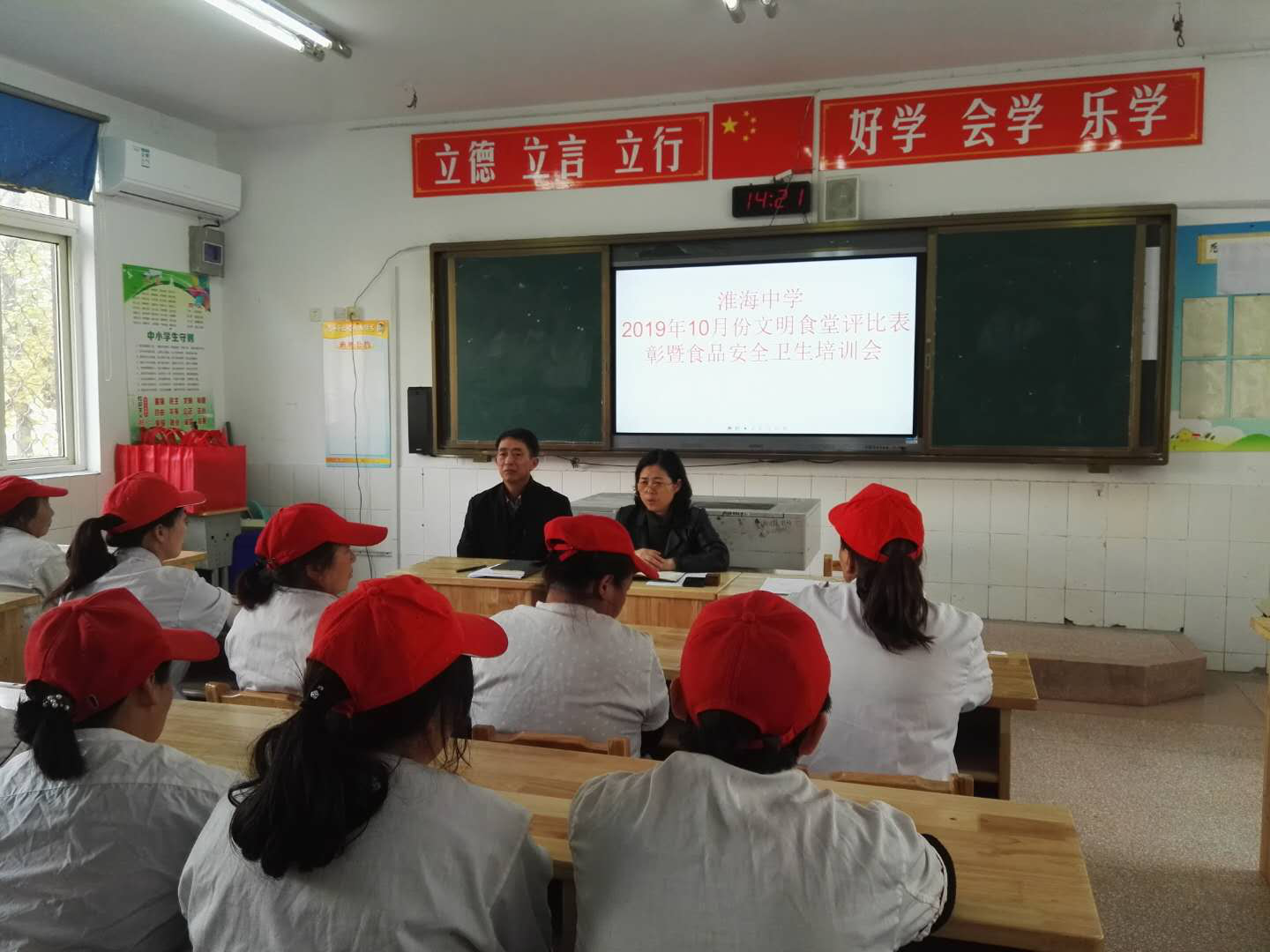 淮海中(zhōng)學召開(kāi)四月份明們文明食堂評比表彰暨食品安全衛生(shēng)培訓會