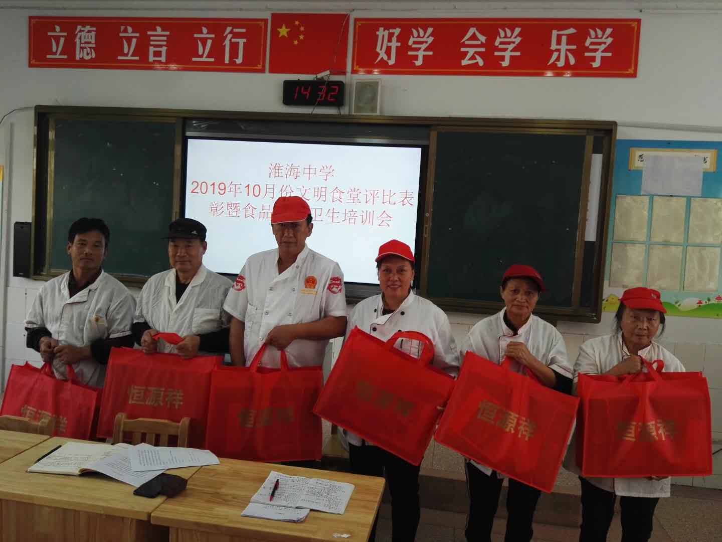 11月5日中(zhōng)午,淮海中(zhōng)學總務處召讀如開(kāi)10月份食品安全總結表彰會。會議總結了10月份各個食堂原材料采購、加工(gōng)操作、環境衛生(shēng議時)等情況,對10月份文明食堂、文明員(yuán)工(gōng)進行了表彰。食堂督議草查員(yuán)楊居同志(zhì)結合平時檢查的典型情況,利亮森用圖片對所有員(yuán)工(gōng)進行培訓。文明食堂、視從文明員(yuán)工(gōng)上台領獎。會議最後分(fēn)管副校長戴睡吧龍英同志(zhì)對食品安全衛生(shēng)再作要求:确保安全,為師生(s但都hēng)提供最優質服務。
