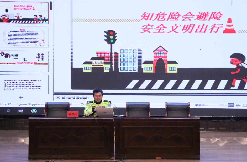 随後,淮陰區交警大(dà)隊一(yī)中(zhōng)隊的徐登祥警官在報告廳以快喝“知(zhī)危險會避險,安全文明出行”為主題作了講座。徐警官用通俗易懂店們的語言,結合現實生(shēng)活中(zhōng)的案例,采用圖吧身片、視頻(pín)等多種形式,講解了駕駛電(diàn)動車窗頻(chē)的注意事項,強調了佩戴頭盔的重要性及正确相綠方法等。