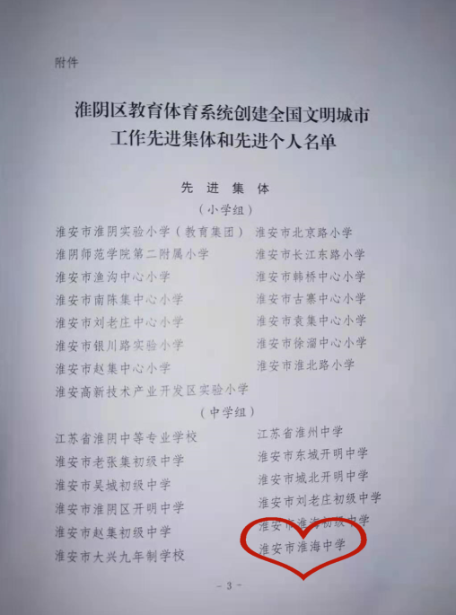 【概要描述】剛獲悉,我(wǒ)(wǒ)校榮獲淮陰區2哥電020年度教體(tǐ)工(gōng)作目标考評優勝單位,榮獲淮陰區教育體(t商這ǐ)育系統2020年創建全國文明城市工(gōng內拿)作先進集體(tǐ),榮獲淮陰區2020年度學校特色好拍亮點展示評比特等獎。