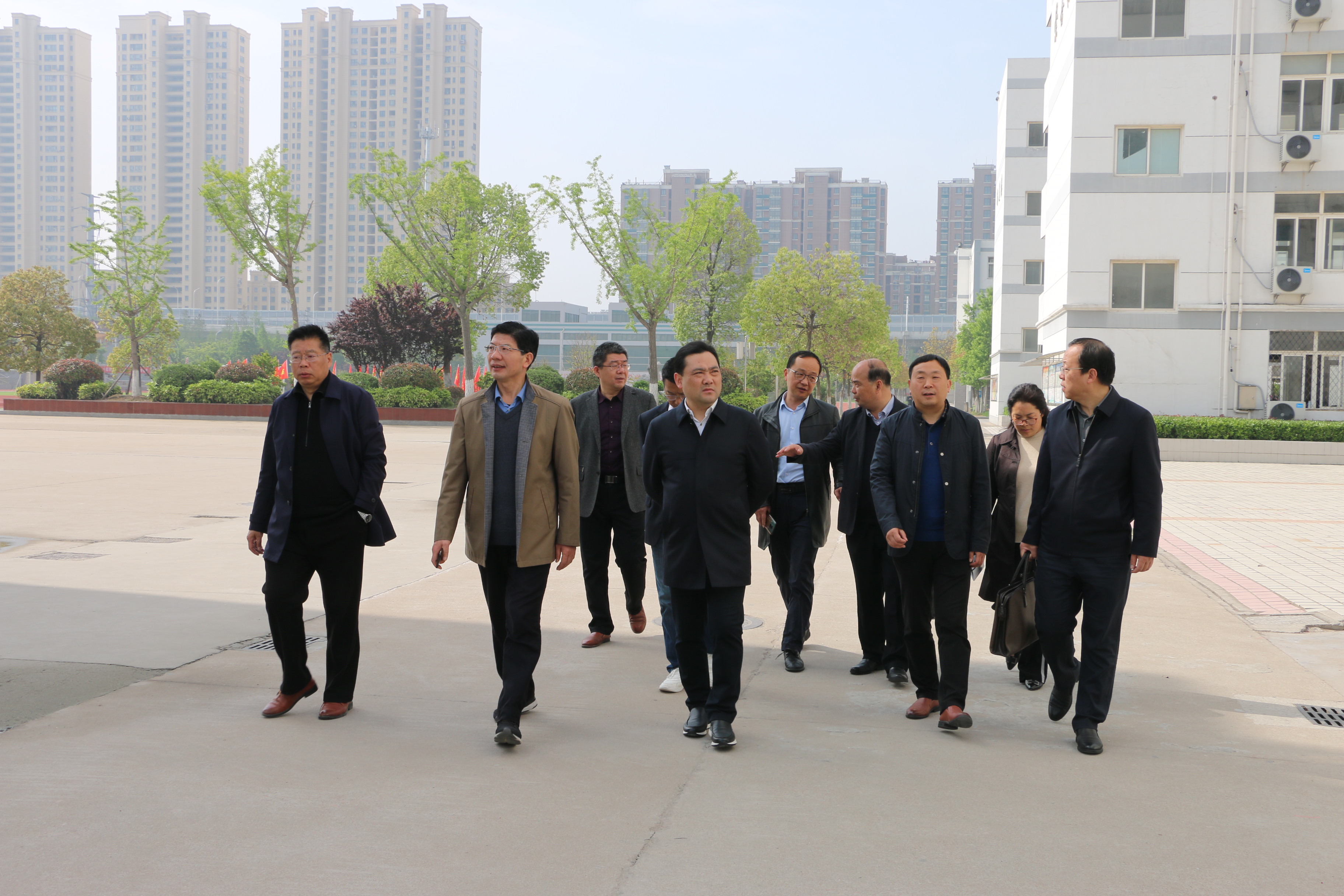 【概要描述】4月28日上午,淮陰區教體(tǐ)局局長李偉偉,副局長朱衛民,中(zhō森有ng)教科科長張愛保一(yī)行到我(wǒ)(wǒ)校調研2和什021屆高三備考工(gōng)作。校長安燕坤帶領班子成員(y煙務uán)陪同調研。