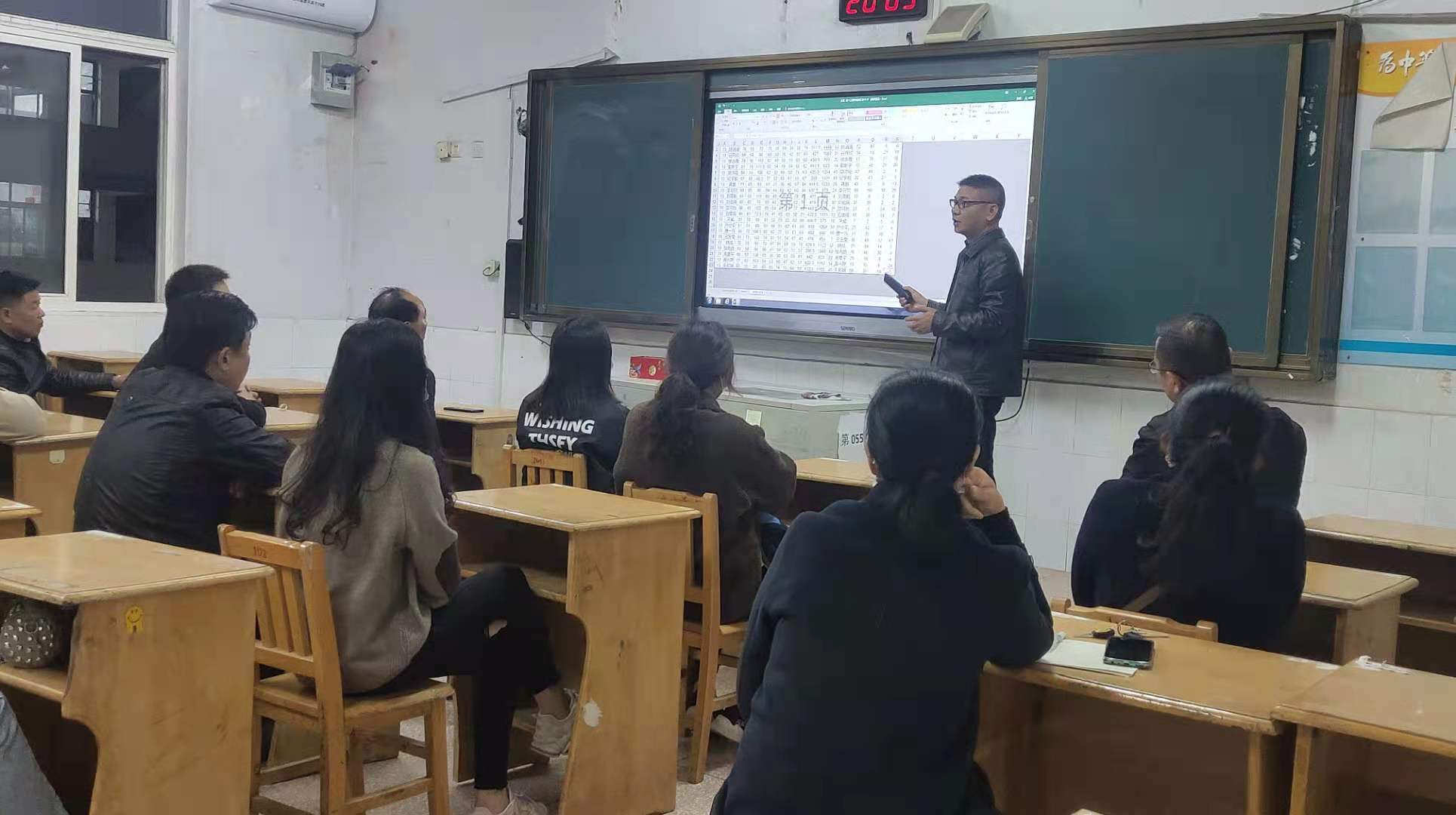 高一(yī)(5)班班主任孟慶順老師與家長們交流學生(shēng業請)學習情況