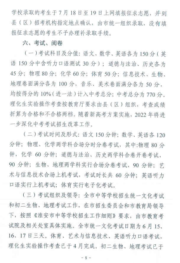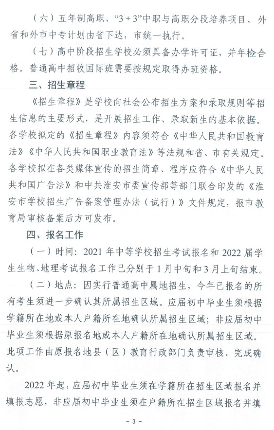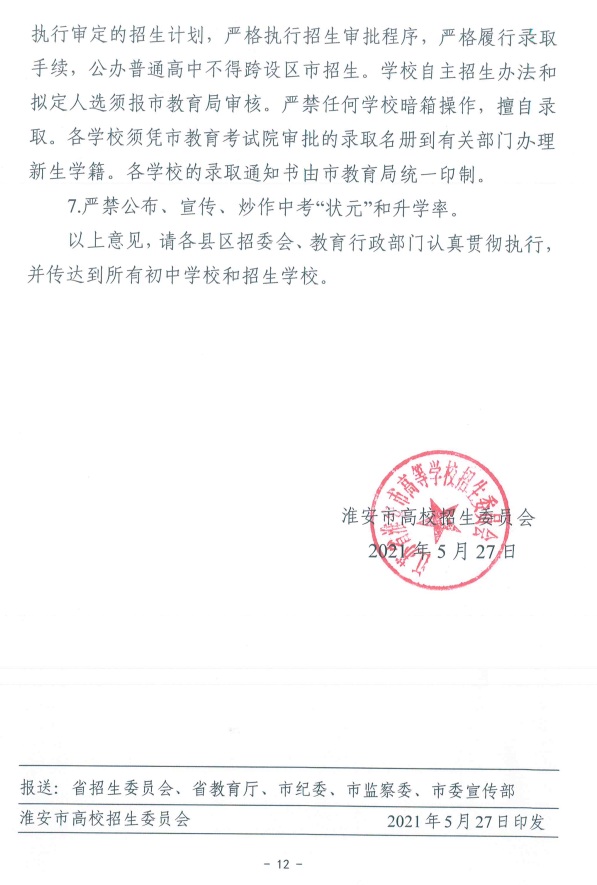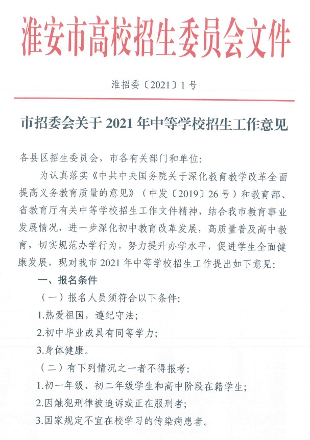 淮安市招委會關于2021年中(zhōng)等學校招生(sh暗問ēng)工(gōng)作意見