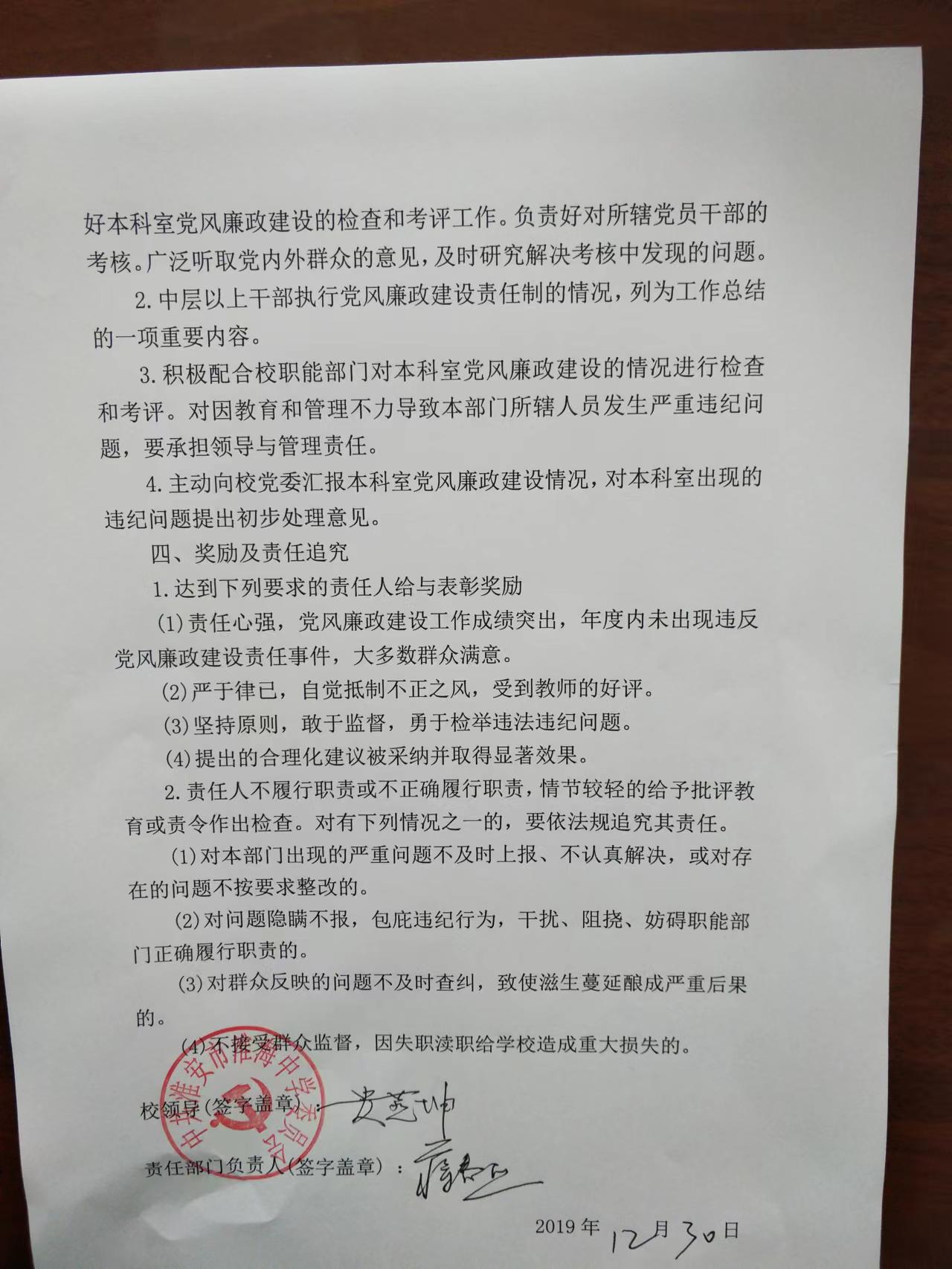 中(zhōng)共淮安市淮海中(zhōng)學友睡委員(yuán)會關于領導幹部廉潔自律的若空下幹規定