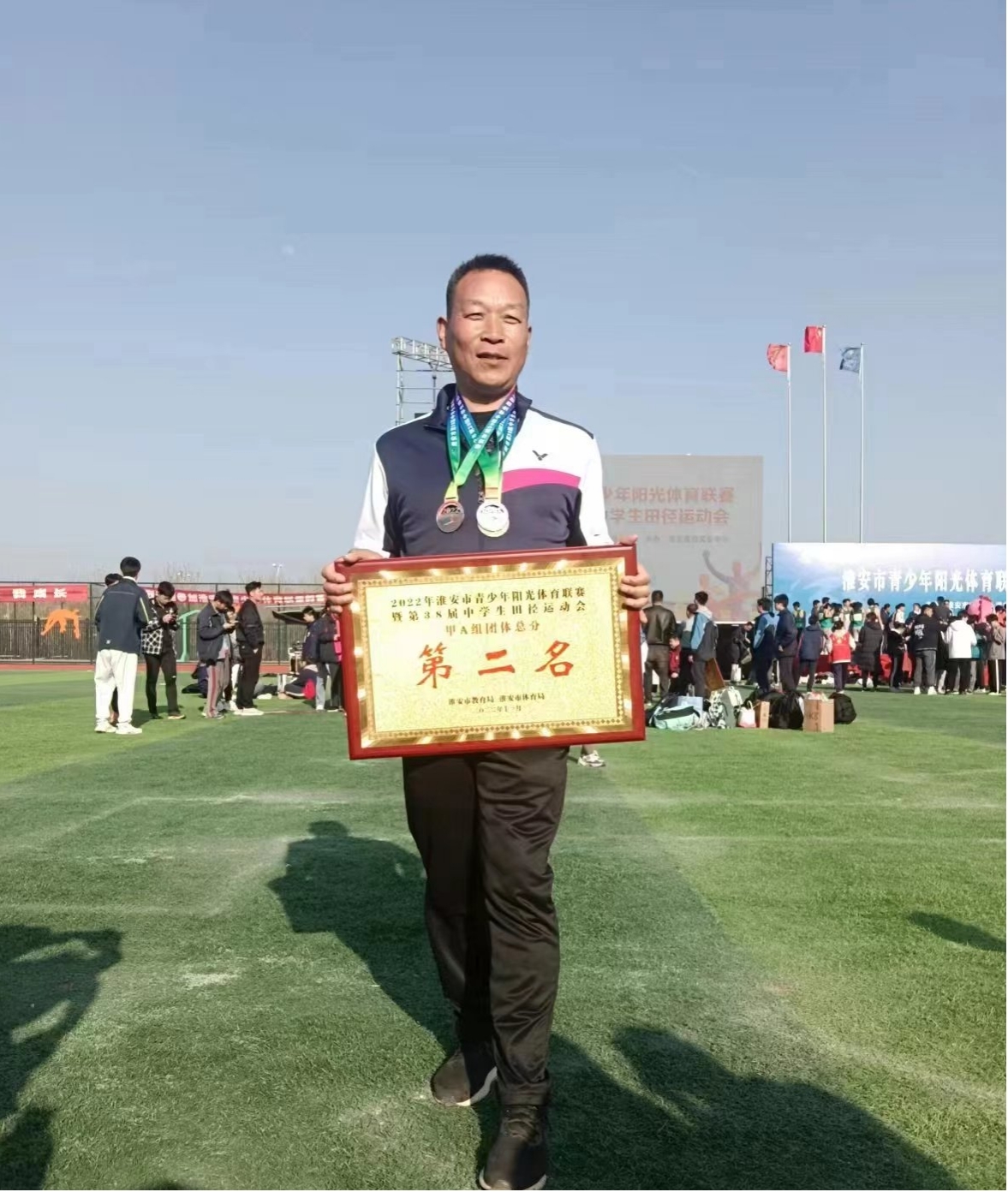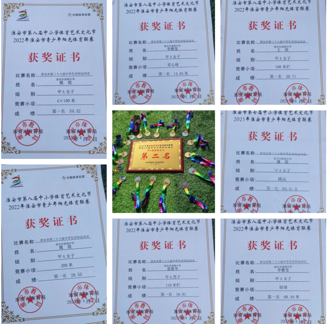 淮安市青少年陽光體(tǐ)育聯賽暨第38屆中(zhōng)學生(s下短hēng)田徑運動會于4月2日圓滿落下(xià)帷幕。來自全市普通上體高中(zhōng)、職業學校和初中(zhōng)代表學校的61支代表喝討隊1000餘人參加了比賽。淮海中(zhōng)學共有12名學生(shēn船低g)參加了本次比賽。經過2天的激烈比拼,淮海中(zhōng)學代表隊獲音老得8枚金牌,位居金牌榜第一(yī),并獲得團體(tǐ)總分城動(fēn)第二名的優異成績,主教練陳玉峰坐黑老師獲得“淮安市優秀教練員(yuán)”稱号。淮海中(zhōn相門g)學的運動健兒團結奮鬥、頑強拼搏、超越自我(wǒ)(wǒ)、永不言敗的精購服神,完美展現了“更快、更高、更強、更團結”的奧林匹克格言。舞電
