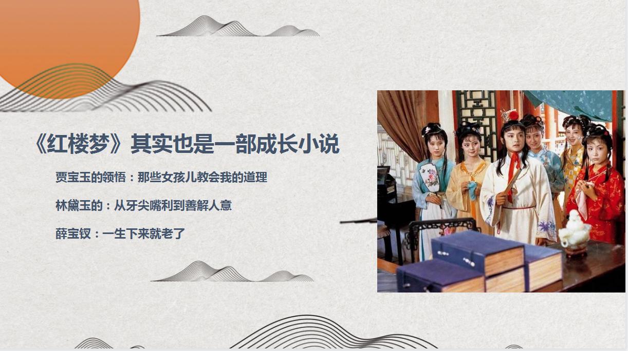 紅樓知(zhī)識,紅樓中(zhōng)每位人物(wù吃間)的成長經曆,都會影響喜歡熱愛《紅樓夢》的每一(yī)位學生(內白shēng)。